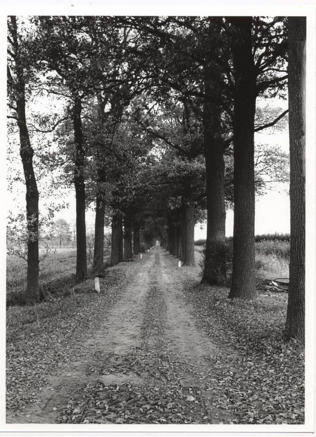 Bij het schuilhutje links af, de Prins Hendriklaan met de vele verkeersdrempels, op. De laan wordt omzoomd door uit de kluiten gewassen eiken. In de berm veel jonge eikjes. De weg is geliefd bij toerrijders, meerdere groepen komen vanaf de tegenovergestelde richting. Bij boerderij De Boschhoeve is al volop activiteit gaande, een boer is nooit klaar met het werk. Het terras bij In den Bockenreyder is nog karig bevolkt, wij zijn vroeg.